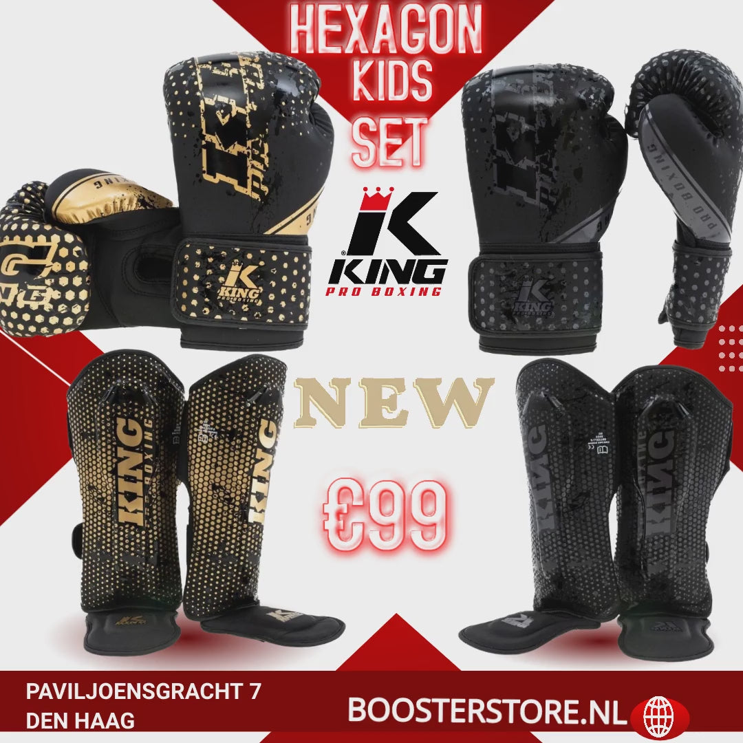 Maak kennis met de 'Hexagon Series' bokshandschoenen van King Pro Boxing, ontworpen voor beoefenaars van alle niveaus en geschikt voor boksen, MMA, kickboksen en Muay Thai. King hexagon kinder bokshandschoenen hebben een opvallend ontwerp met het iconische 'King Pro Boxing' logo, waardoor je uitrusting er stijlvol uitziet. King hexagon kinder bokshandschoenen zijn verkrijgbaar in zwart & goud, zodat je de handschoenen kunt kiezen die het beste bij jouw smaak passen. De klittenbandsluiting met haak-en-lus systeem zorgt voor een perfecte en veilige pasvorm, waardoor de handschoenen tijdens trainingen goed blijven zitten. Met professionele, meerlaagse schuimvulling bieden deze handschoenen optimale schokabsorptie, waardoor je handen beschermd worden en het risico op blessures tijdens intensieve trainingen vermindert. King hexagon kinder bokshandschoenen hebben extra vulling op de handpalm en pols zorgt voor extra ondersteuning en bescherming, waardoor je krachtige stoten kunt uitdelen met vertrouwen. Gemaakt van hoogwaardig synthetisch leer, zijn deze handschoenen duurzaam en gaan ze lang mee. Het synthetische leren buitenwerk verhoogt niet alleen de levensduur van de handschoenen, maar maakt ze ook gemakkelijk schoon te maken en te onderhouden. Veiligheid staat voorop, daarom hebben deze handschoenen een aangehechte duim om het risico op duimblessures te minimaliseren. Kortom, de 'Hexago Series' bokshandschoenen van King Pro Boxing zijn de ideale keuze voor beoefenaars van boksen, MMA, kickboksen en Muay Thai. King hexagon kinder bokshandschoenen met hun professionele meerlaagse schuimvulling, extra vulling op de handpalm en pols, veilige klittenbandsluiting, aangehechte duim en hoogwaardige synthetische leren constructie, bieden deze handschoenen de perfecte combinatie van veiligheid, duurzaamheid en betaalbaarheid. Rust jezelf uit met het beste en verbeter je prestaties in vechtsporten.